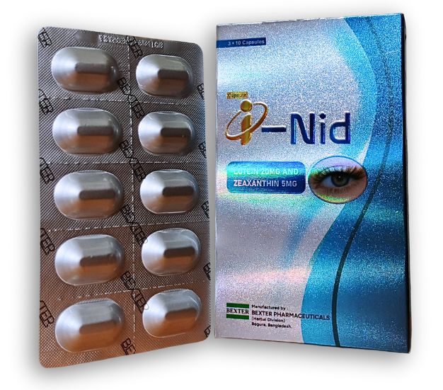 Each capsule contains: Lutein 20 mg, Zeaxanthin 5 mg, Excipients q.s.
