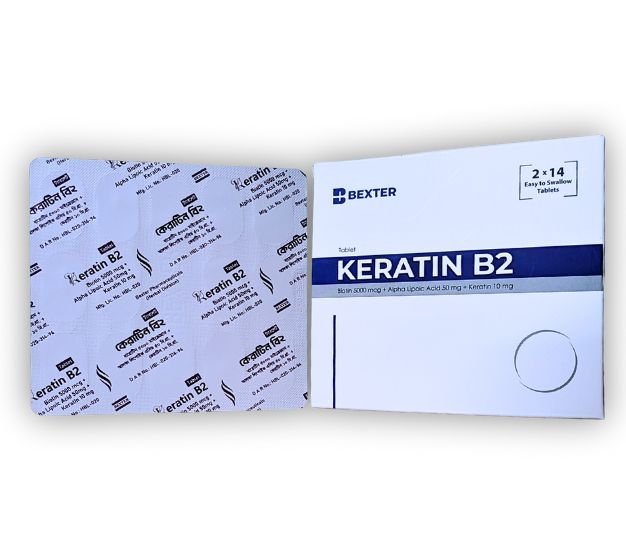 Biotin 5000 mcg, Alpha Lipoic Acid 50 mg, Keratin 10 mg, Other ingredients (excipient blend)