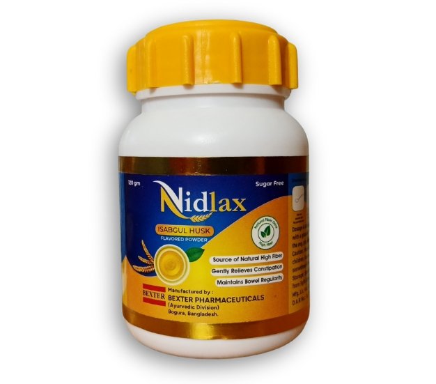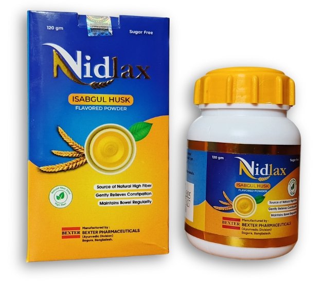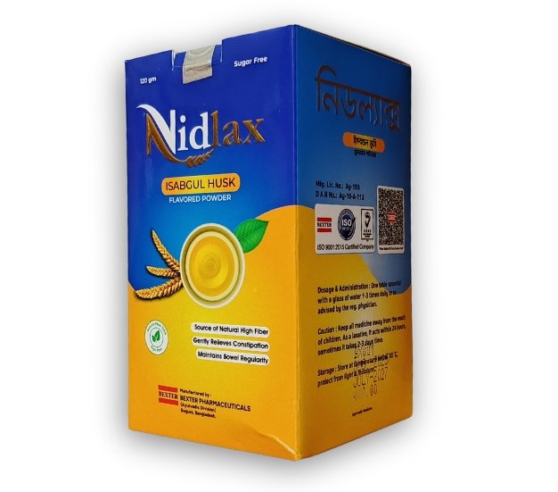 Nidlax powder contains Isabgul Flavoured Powder (Desert Indianwheat) as the active ingredient. When mixed with water, it forms an orange-flavoured natural fiber drink that helps relieve constipation, regulate bowel movement, and reduce cholesterol.