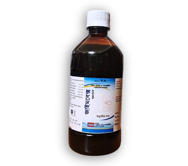 Each 5 ml contains extracts of Cyperus rotundus 2.63 g, Woodfordia fruticosa 0.22 g, Zingiber officinale 27.38 mg, Piper nigrum 27.38 mg, Plumbago zeylanica 27.38 mg, and other ingredients q.s.